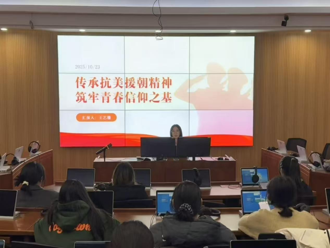 学生党员王艺珊主讲,以“传承抗美援朝精神,筑牢青春信仰之基”为主题。