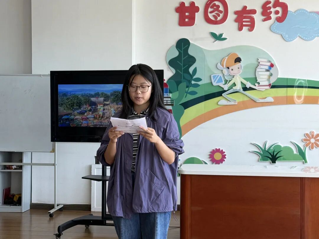 常艺千同学主持。开场后,主持人先将参与者分组,随后发放影片经典台词文本,逐句讲解重点词汇与实用短语;进入角色扮演环节,市民们依据分配的角色,模仿人物语气声情并茂地朗读,沉浸式感受语言魅力。期间,高翻学院志愿者全程融入各组,通过实时答疑、示范发音,帮助大家攻克表达难点。最后,参与者主动分享学习成果与心得,现场氛围热烈。主持人在结束语中感谢大家的热情参与,并鼓励大家将英语表达融入日常,让语言学习真正“用起来”。