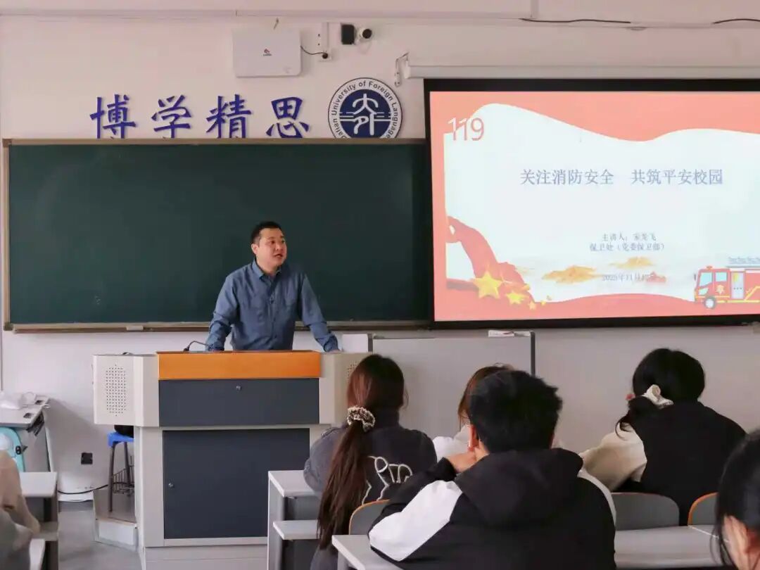 11月12日下午,同学们齐聚励业楼B区506教室,认真聆听并学习了保卫处宋龙飞老师主讲的消防安全专题讲座。宋老师以贴近校园生活的视角切入,用通俗易懂的语言展开系统讲解:从校园内灭火器、消防栓等各类消防设施的具体功能与分布特点说起,着重强调爱护消防设施是守护生命安全的重要前提,呼吁同学们主动熟悉设施位置、自觉做好保护工作;随后深入解读消防安全“四懂”“四会”核心要点,帮助大家夯实应急处置的知识基础;结合近年来高校典型火灾案例,剖析用火不慎、违规使用电器等常见致灾原因,尤其针对寝室用电安全,反复叮嘱“人走断电”的关键要求,为同学们敲响安全警钟;最后围绕教室、寝室两大重点场景,细致讲解火灾预防细节与火场逃生技巧,现场演示灭火器规范操作流程,并特别提醒大家,遇险时务必保持冷静,优先保障人身安全,切勿因贪恋财物陷入危险。