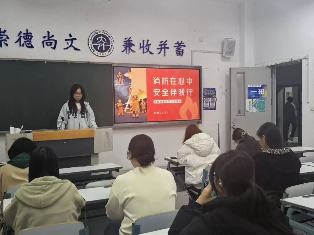 为深化演练成效、拓展消防安全教育覆盖面,2025级各班组织召开消防主题班会。班会伊始,班委通过幻灯片展示、视频回放等形式,系统梳理疏散逃生、灭火器使用、应急避险等关键环节,再次强化“生命至上、科学避险”的核心原则。随后,各班开展案例分析、知识问答、分组讨论等互动环节,帮助同学们进一步厘清消防应急流程,筑牢安全防范意识、提升逃生避险能力。