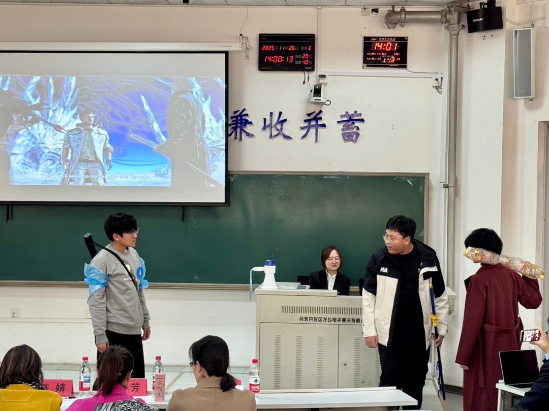 陈婧、张华慧、杨芳、杨迪、Goncalo Dias五位老师担任大赛评委。比赛设置单人组与多人组两个组别,经班级初选脱颖而出的24组选手晋级决赛。全体参赛选手以精湛的模仿技艺与得体的舞台风范,充分展现语言之美与艺术张力,为现场观众呈现了一场专业度与观赏性兼具的视听盛宴。