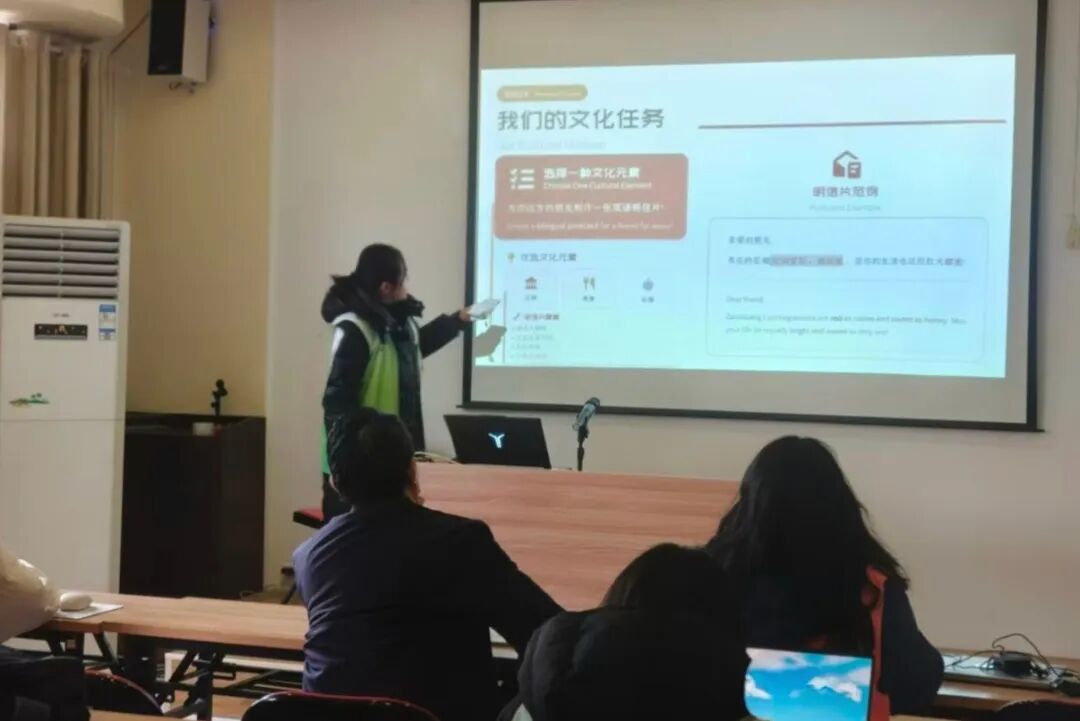 从除雪保畅、腊八送粥到档案整理、春运服务,再到策划撰写与儿童宣讲,一系列实践让我对家乡、宣传工作和自身都有了全新认识。依托专业特长,我打造“乡音声桥”双语课堂,用中英双语讲述台儿庄古城、菜煎饼等家乡故事;走进薛城档案馆,我触摸城市文脉,更坚定了做家乡故事讲述者的初心。我也深刻理解到,最好的宣传素材源于服务现场,记录即是参与。独立负责12节伙伴领航课,从备课到复盘,再到处理各类琐碎事务,我不仅学会把大主题讲进孩子心里,更在实践中褪去慌张,收获了直面未知的底气。