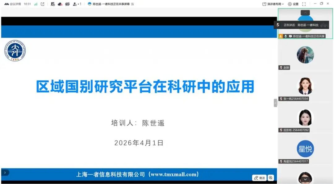 举办“区域国别研究平台在科研中的应用”线上讲座。本次讲座为我院智能技术培训讲座的第二场,特邀行业专家线上授课。